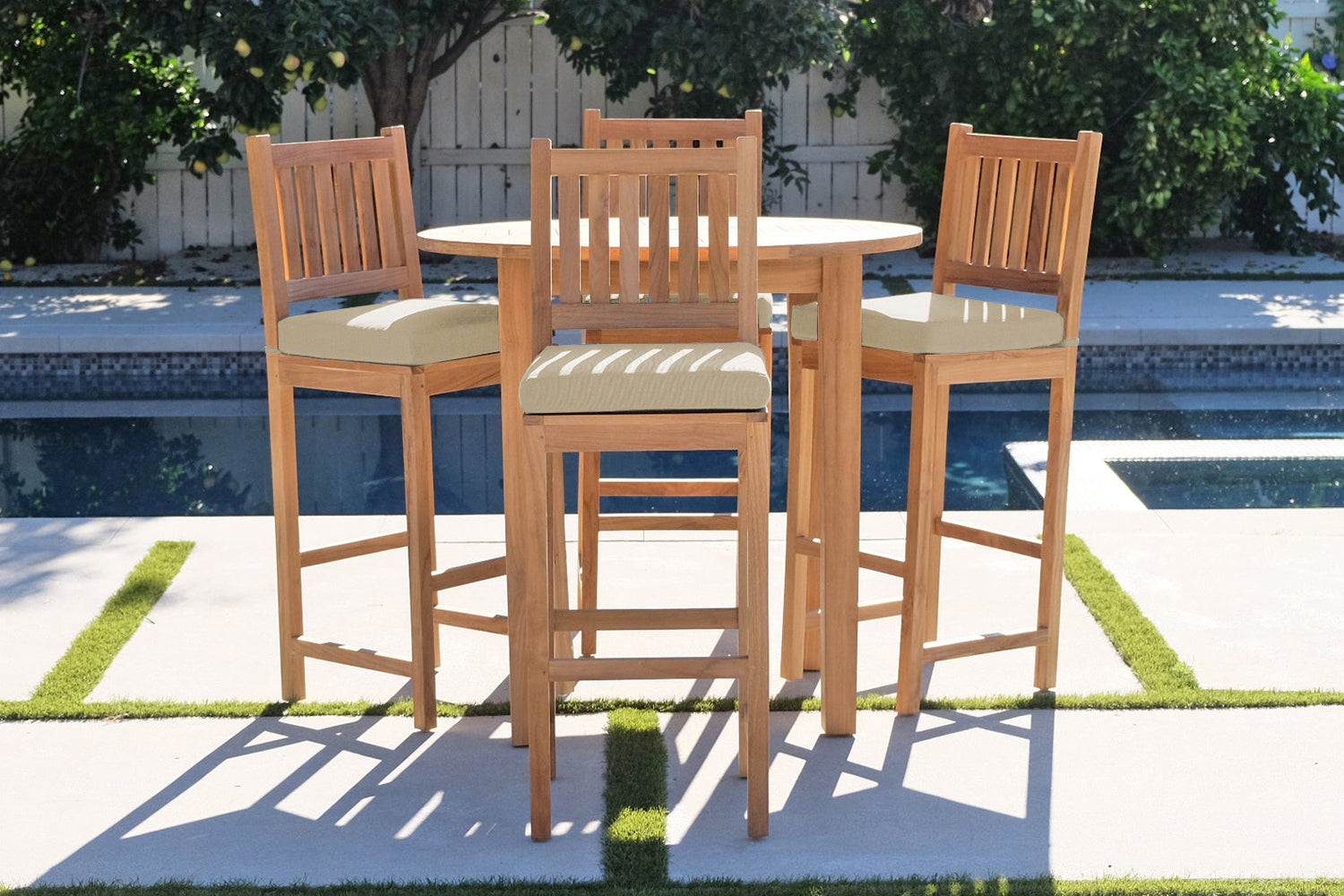 5-Piece Huntington Teak Outdoor Bar Set with 40" Round Bar Table & Sunbrella® Cushions