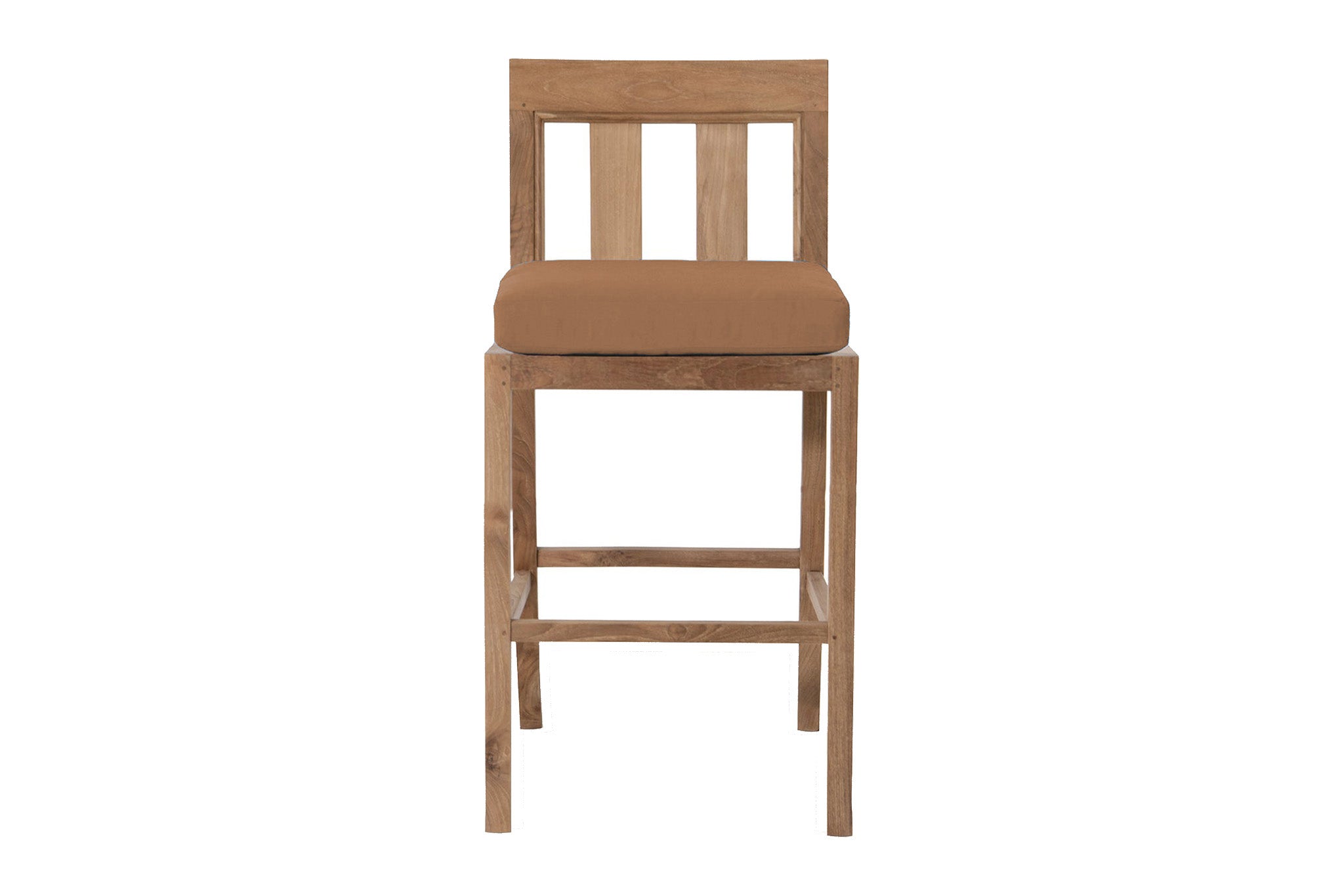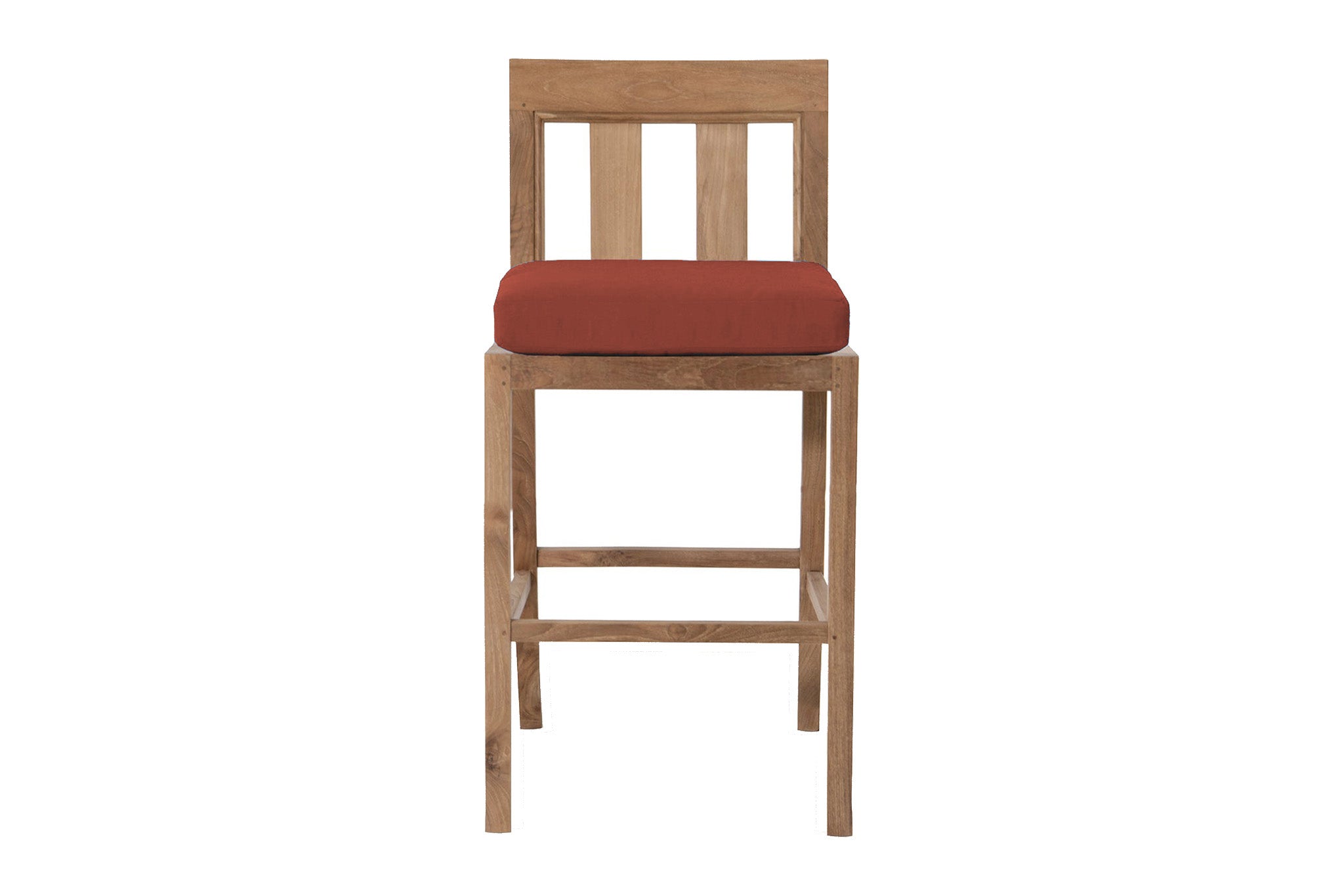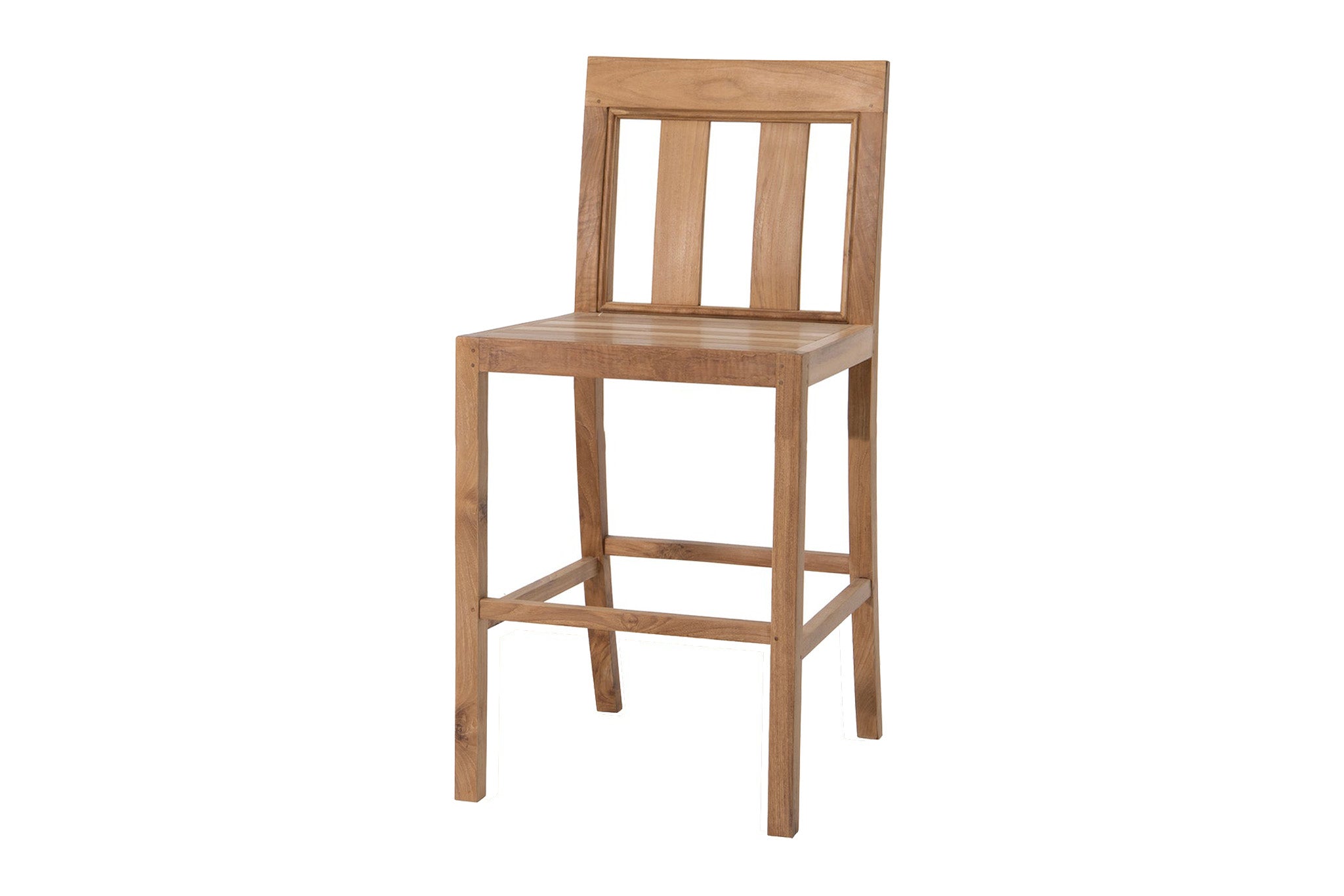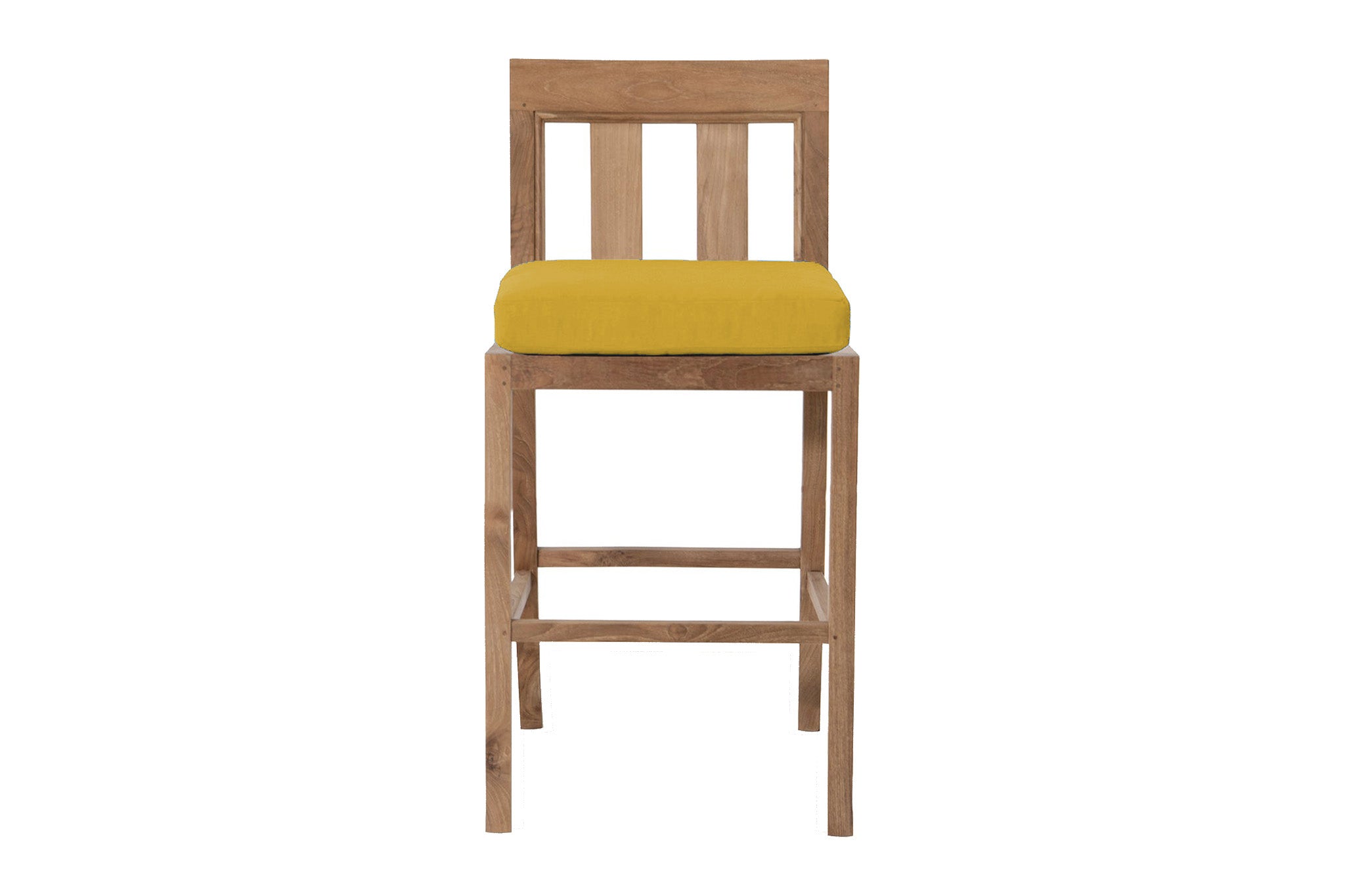 Built using mortise-and-tenon joinery with dowel reinforcements, the frame offers superior structural integrity, while the finely sanded satin finish highlights teak’s naturally warm tones and smooth grain. Whether placed poolside, on a rooftop terrace, or around a bar-height table, this armless design offers streamlined comfort and easy mobility.