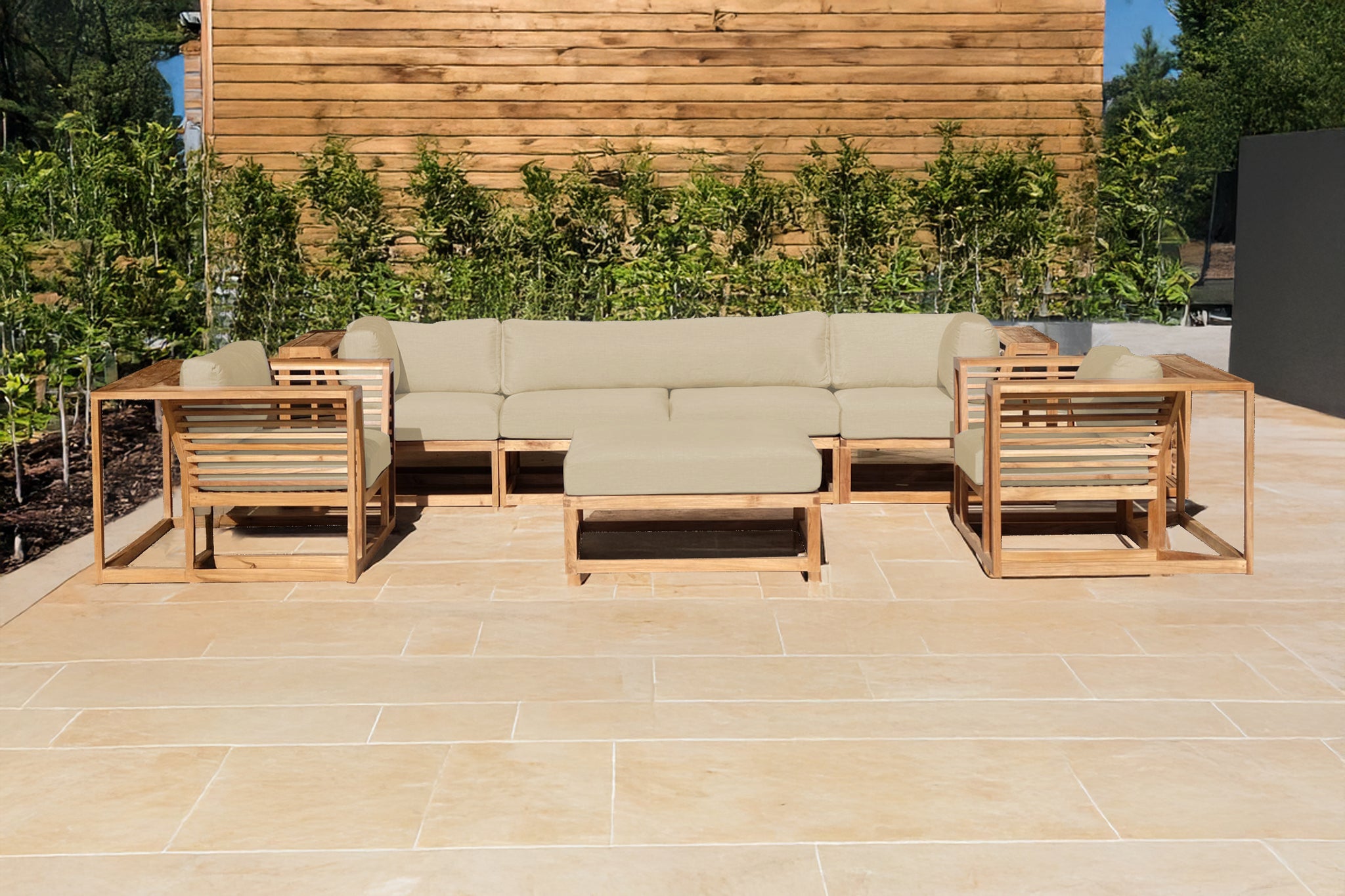 Designed for long-lasting performance in outdoor environments, this premium teak patio furniture set blends style, comfort, and craftsmanship — built to last for decades.