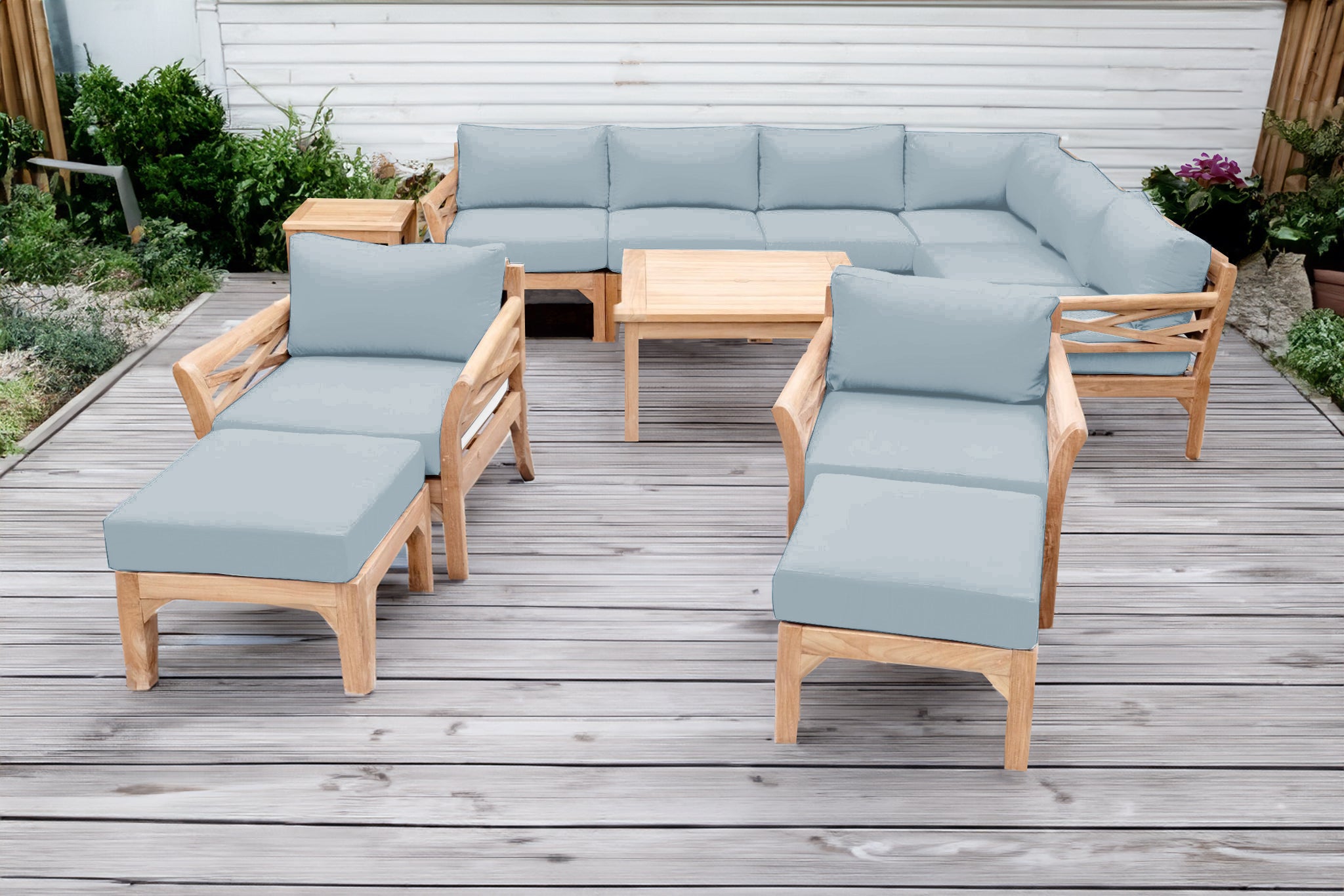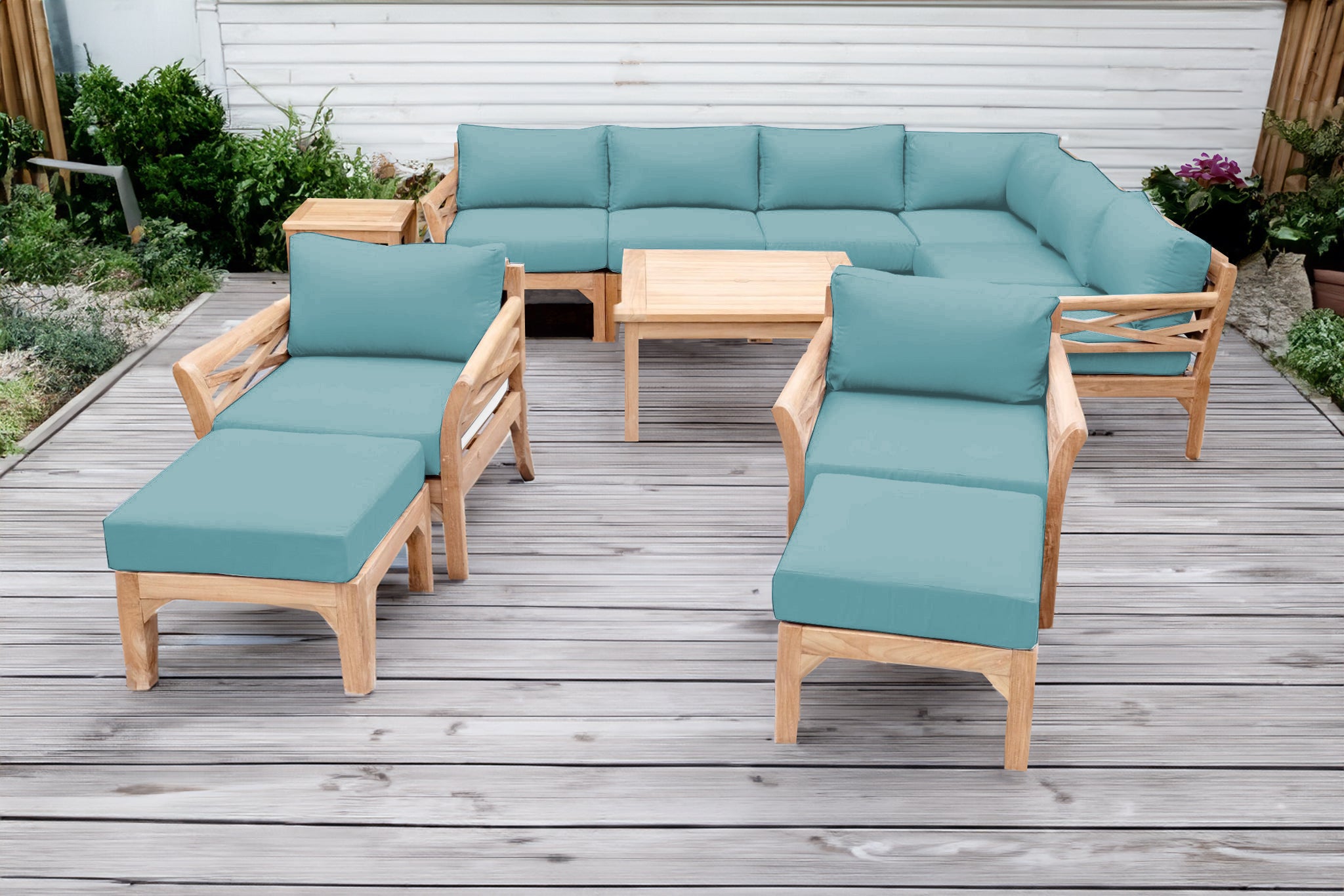 Designed for long-lasting performance in outdoor environments, this premium teak patio furniture set blends style, comfort, and craftsmanship — built to last for decades.
