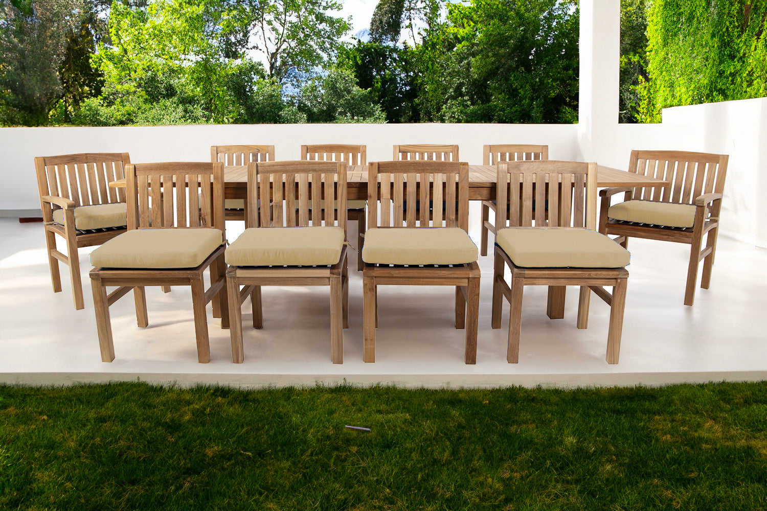 11-Piece Huntington Teak Outdoor Dining Set with 120" Double Leaf Expansion Table & Sunbrella® Cushions