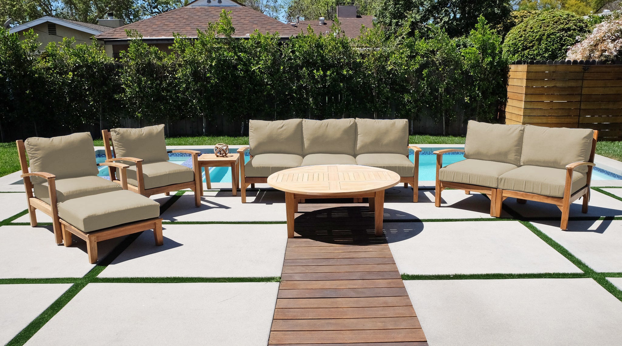 Designed for long-lasting performance in outdoor environments, this premium teak patio furniture set blends style, comfort, and craftsmanship — built to last for decades.
